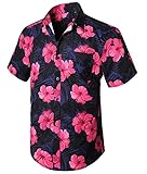 Enlision Camisa Hawaiana Flores Hombre Manga Corta Funky Floral Casual Verano Bolsillo Frontal Púrpura Rosa Aloha Hoja Estampada Hawaii Camisas Playa L