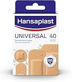 • EMBALAJE - Hansaplast Universal 40 tiritas, tiritas infantiles y adultos de diferentes tamaños (20 pequeños, 10 medios, 2 grandes y 8 redondos), esparadrapo universal de color carne