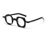 JUJNTNT Montura ovalada de acetato para gafas, con remaches para mujer y hombre (negro)
